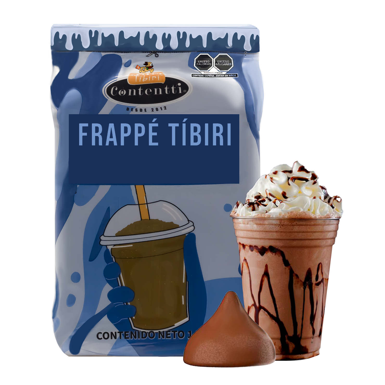 Azúcar invertida, agua, saborizante Tíbiri Contentti, benzoato de sodio, sorbato de potasio, y colorante.