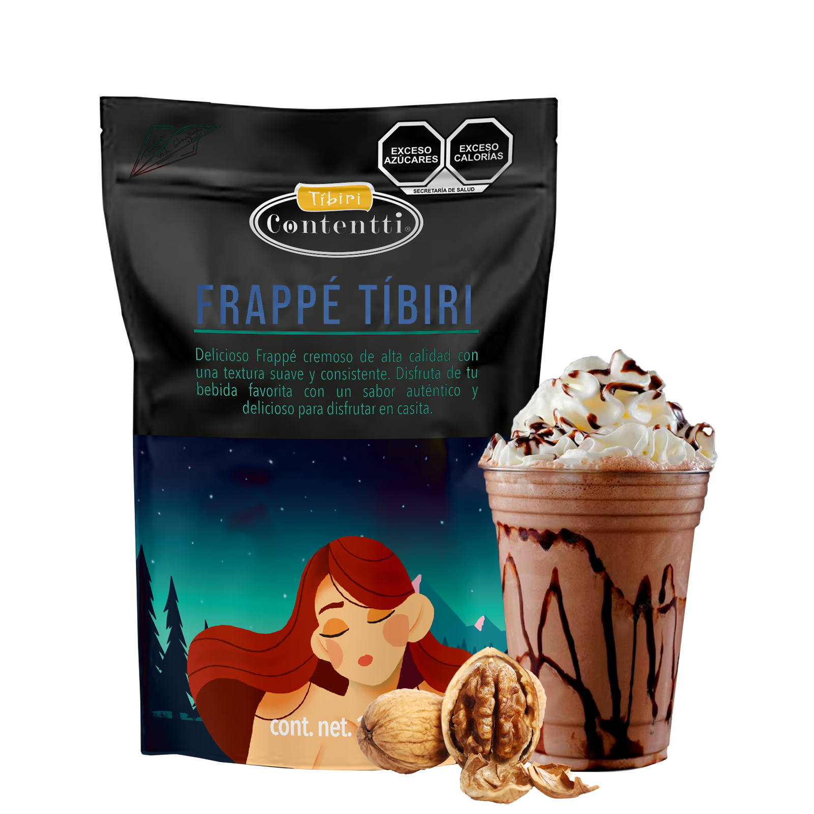 Azúcar, leche entera, grasa vegetal, suero de leche, maltodextrina, goma xantana, saborizantes Tíbiri Contentti, fosfato de sodio, dióxido de silicio, café, cocoa, color amarillo 5, azul 1, color caramelo